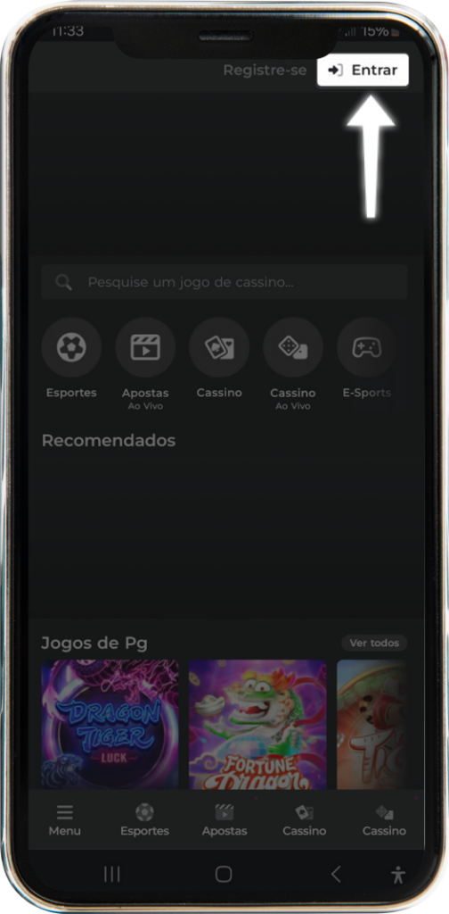 1. Clique no botão ENTRAR no canto superior direito da página principal.