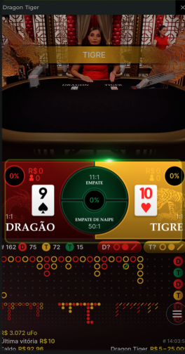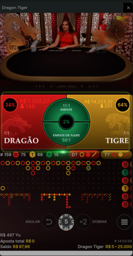 Dragon Tiger ao vivo é a versão online do tradicional jogo de cartas Dragon Tiger. A partida acontece em tempo real, em uma mesa de jogo ao vivo, com um dealer real. Os jogadores podem apostar em várias opções, como qual das cartas será a mais alta, se será o Dragão ou o Tigre, ou se haverá um empate.